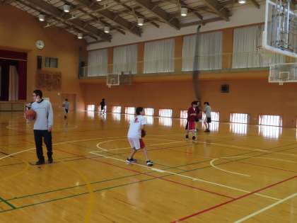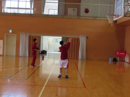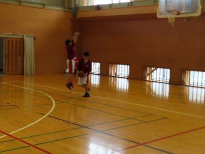 男子バスケット部は、女子と一緒に体育館で行っていました。全面を広々と使用していました。