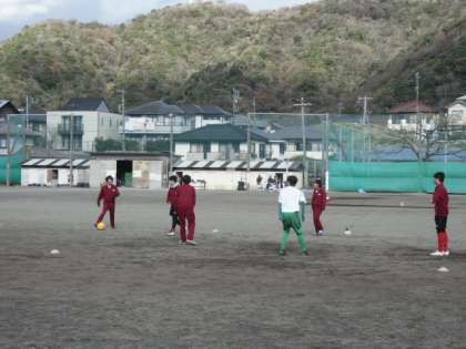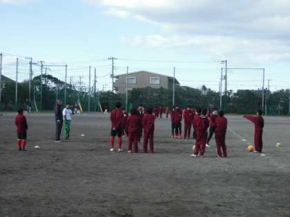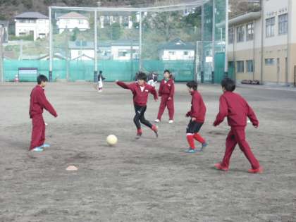 サッカー部は、4対2の練習をしています。粘り強くボールを追いかけていました。