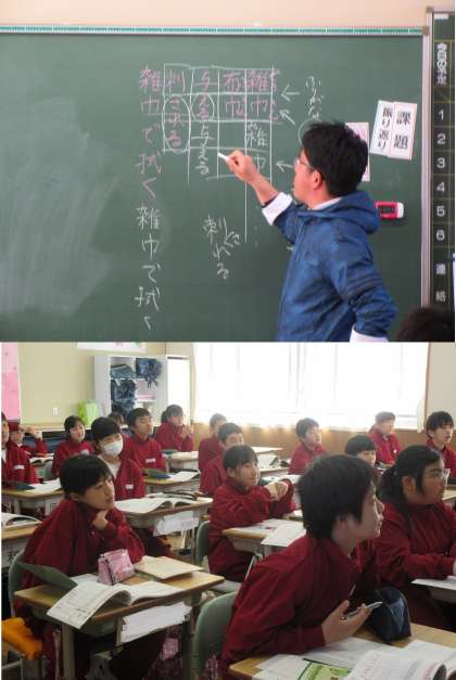 1C(英語)テンポのよいリズムと、ジェスチャーも取り入れながら楽しく発音しています。このあとテストもあるので、みんな真剣でした。