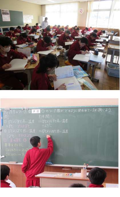 1D(数学)学習課題「−(マイナス)がついた数がどのように使われているのか調べよう」に、教室内では「思考」があふれていました。