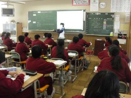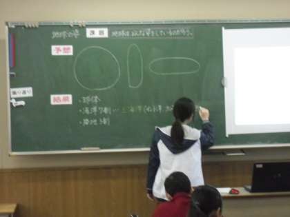 「地球はどんな姿をしているのだろうか」という課題のもと、地球の海洋や陸地について確認していました。石川先生は、太平洋を大泉洋と書いていましたが、誰も反応しなかったため、寂しがっていました。