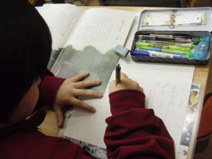 3D国語:詩の構文について学習していました。作者がどのような意図をもって詩を作ったのか考えていました。