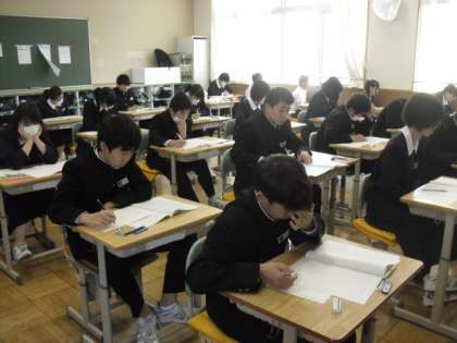 国語、数学、英語が終わった後、生徒質問紙について回答していました。午後は、初めての「英語:話すこと」の調査です。頑張ってください。