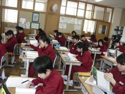 1D国語:「風呂屋の散髪」という教材を用いて授業が進んでいました。一輝先生の朗読を、生徒が聞いていましたが、さすが国語の先生です。情感を込めた朗読が、1Dの生徒の心を引きつけていました。みなさんもこんな朗読ができるようになるといいですね。