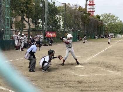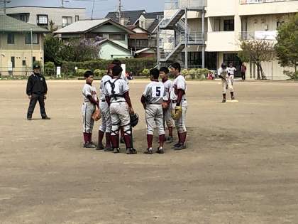 大岡中との準決勝。山田くんの本大会三本目のホームランや絶妙なスクイズで同点に追いつき、一気に逆転。守っては再三のピンチをピッチャーを中心に粘り強く守り勝ちました。一時間後には決勝です。頑張れ三中!