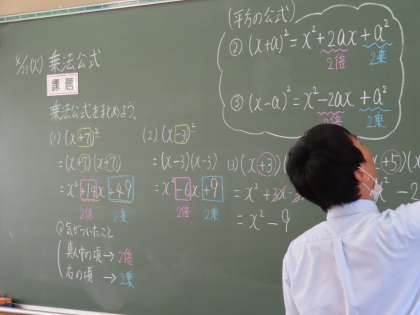 3A数学:乗法公式について学んでいます。しっかりと解くことができるように、熱心に取り組んでいました。