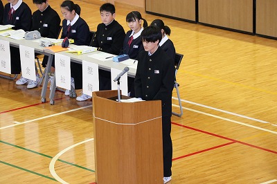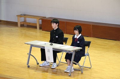 続いて、専門委員会です。前期の活動目標を確認した後、常時活動、特別活動について提案しました。生活「学校生活のレベル向上〜あいさつ・身なり・時間〜」、整備「黙働清掃〜学校をきれいにし、、心もきれいにしよう」、保健「自分の予防で自分が変わる」、広報「目と耳で伝える情報」、福祉「愛が地球を救う」、給食「給食に学び、給食に感謝〜マナー・時間・残量」、図書「図書室改善」 どの委員会も常時活動を大切にしながら、工夫された提案をしていきました。