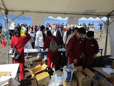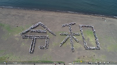 4月28日(日)午前中に新元号施行記念事業が島郷海岸にて実施されました。1,123名もの参加者が集まり、海岸清掃や令和の人文字をつくるなど盛り上がりました。その中で、本校1年生5名がボランティアとして参加し、受付、抽選会の補助など意欲的に行い、一助となりました。