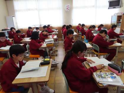 1D国語:「字のない葉書」気持ちは、言葉以外にどんな所に表れるか考えた後、朗読をしていきました。目的をもって、文章をとみとる学習をしています。