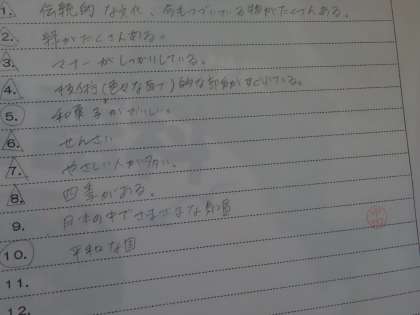 「礼儀正しい」「機械が精密」「四季がある」などいいところをたくさん見つけることができました。