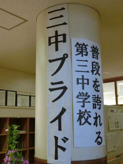 平成31年度がスタートし、5月1日より令和元年となりました。今年度の本校のスローガンは「三中プライド(普段を誇れる第三中学校)」です。日頃の生活や生徒会活動、部活動など、三中生としての伝統と誇りを胸に頑張っていきます。