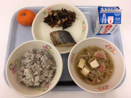 ・ぬまづ茶飯・牛乳・鰆の照り焼き・ひじきと大豆の炒め煮