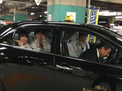修学旅行生や外国からのお客さんで、いっぱいです。タクシー観光に出かけます。