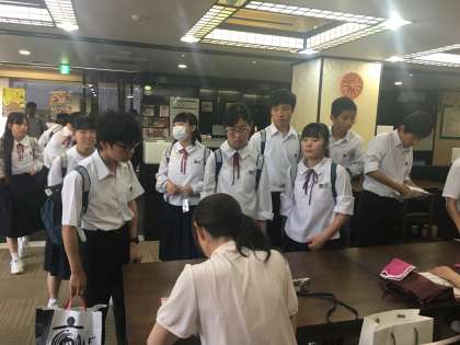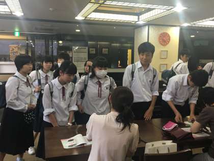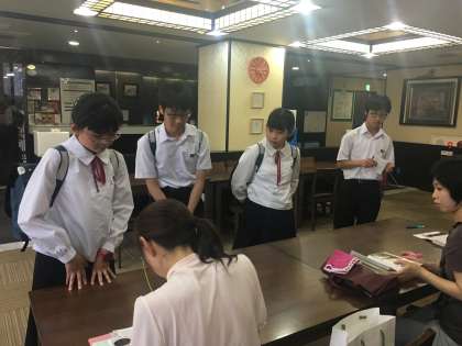 初日の半日観光が終了し、17時に続々とホテルに戻ってきました。楽しかったという声と、暑かったせいか、ちょっぴり疲れた顔をしている人もいました。先生方のチェックは、元気よく行っていました。