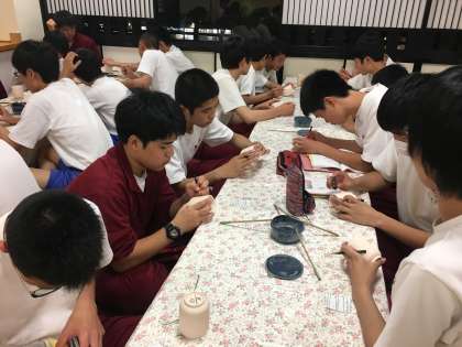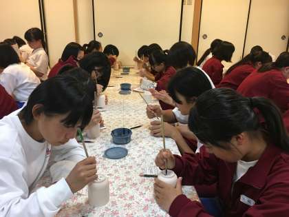 窯元の方が指導者としてきてくださり、一人一人集中して取り組んでいます。