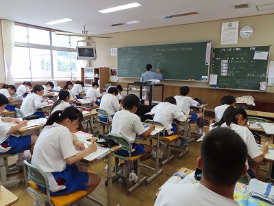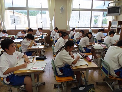 2C社会:世界の地形について学習しています。写真をアメリカの中央平原とヒマラヤ山脈の写真を比べて課題を見つけていました。中1理科の火山の学習と関連させて考えていました。