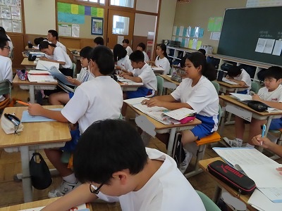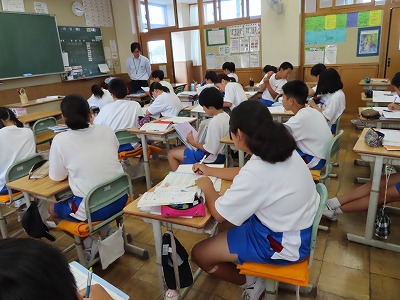 1E数学:立ち幅跳びの記録から、平均の出し方を考えていました。