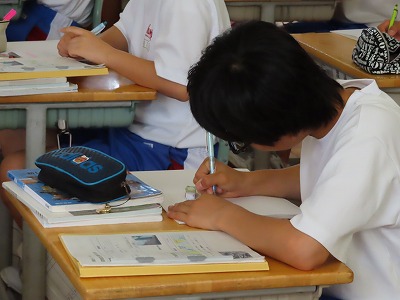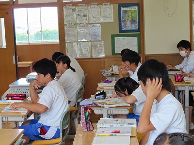 3B社会:なぜ、戦後たくさんの国が分裂してしまったのか、考えていました。第2次世界大戦後、中国、朝鮮、ドイツ、ベトナムなど多くの国が分裂してしまった理由を歴史背景から考えています。動画を活用し、とてもわかりやすく授業が進んでいました。