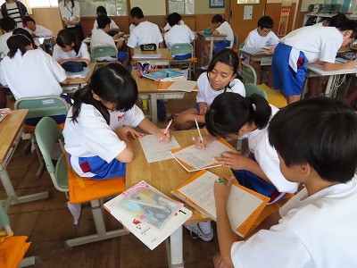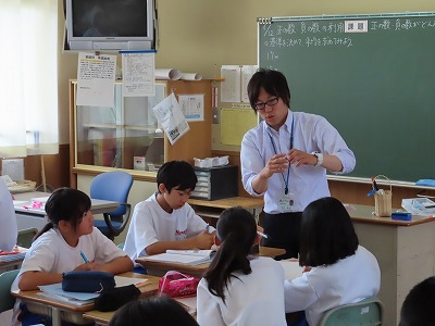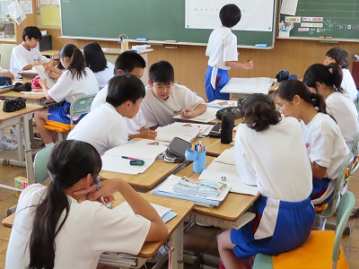 ハンドボール投げの記録から、平均を出そうと考えました。すべての数字を足して平均を出すことは、みんなめんどくさくて嫌そうでした。そこで、どうしたらよいか考えていきます。何のための授業なのか、目標ができた瞬間でした。