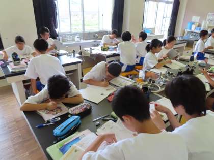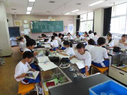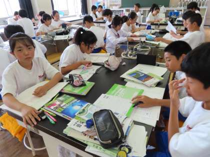 1A理科:葉の表と裏のどちらから多くの水が出ているのかを調べていきました。結果から、なぜそうなるのかを考えています。