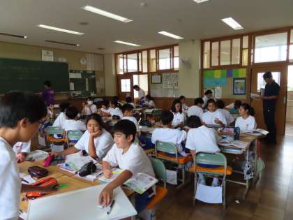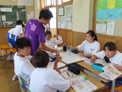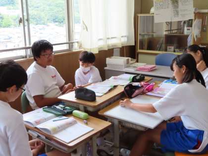 1E保体:ホワイトボードを用いて課題解決を行っています。自分たちの考えを視覚化して、どんな考え方をしてきたのかがわかりやすくなります。