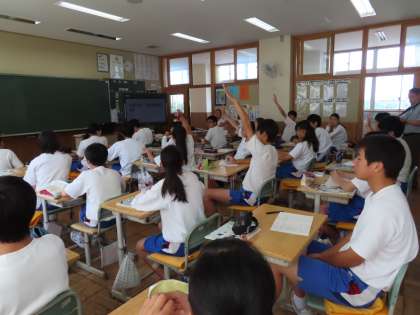 3A道徳:どの生徒も意欲的に授業に取り組んでいます。全員が読むときには読み、書く時には書くなど、メリハリをつけて授業にのぞんでいました。田村研修アドバイザーからは、「生徒がよく集中して活動し、人間関係もよく、いいクラスですね。」とお褒めの言葉をいただきました。