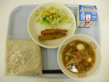 ・中華麺・牛乳・五目ラーメン(スープ)・小いわしフライ