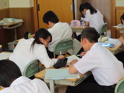 2D英語:問題集を用いて、単元の復習を行っています。今週は期末テストです。しっかりと確認し、自分のものとしていけるといいですね。