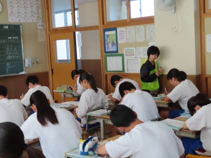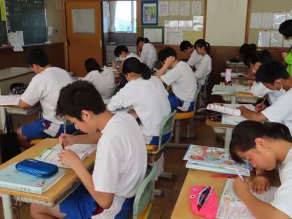 3C英語:単元テスト返しを行い、テスト前の最終確認を行っています。明日からのテストに向けて真剣です。
