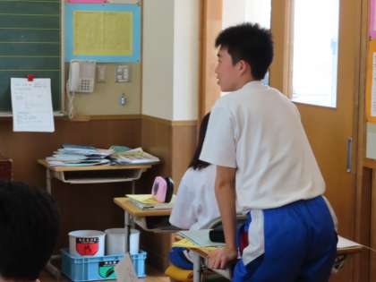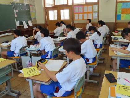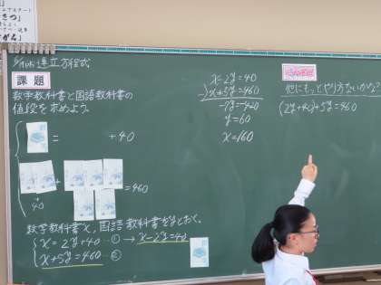2D数学:連立方程式のいろいろな解法について考えていました。分からない所はお互いに教え合いながら授業が進んでいました。