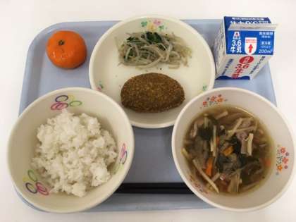 ・ご飯・牛乳・黒はんぺんお茶フライ・塩ナムル・沢煮椀