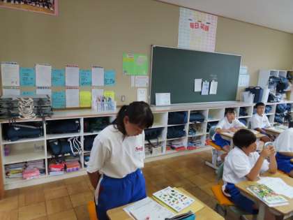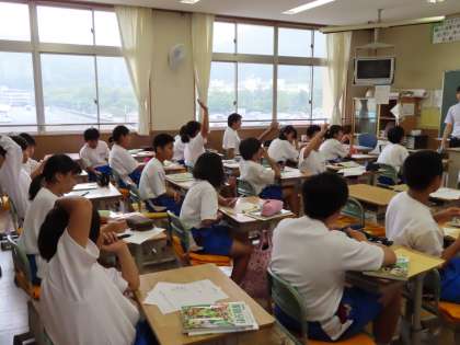 1E家庭科:衣服について学習しています。制服、体育着、下着を家に帰ったときにどうしているかを確認し、なぜそうするのかを考えていました。
