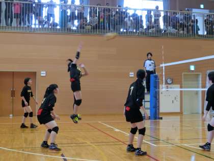 ベスト4をかけて戦った女子バレー部の試合は、3セットにもつれ込む熱戦となりました。門池中との試合は1−2で惜敗しましたが、「ビバ三中」の、後輩や友達・保護者の応援が選手に力を与えてくれました。三年生は力の限りを尽くして、よく頑張りました。