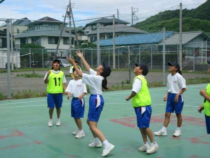 1E体育:「3×3」では練習ゲームに入り、スペースを探していかに動けるか意識しながら楽しく学習していました。