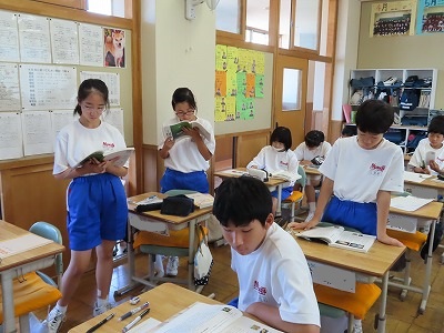 1A国語:朗読を行っていました。意欲のある生徒が多く見られました。