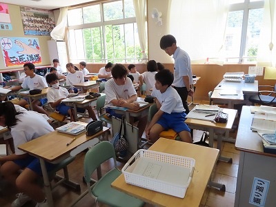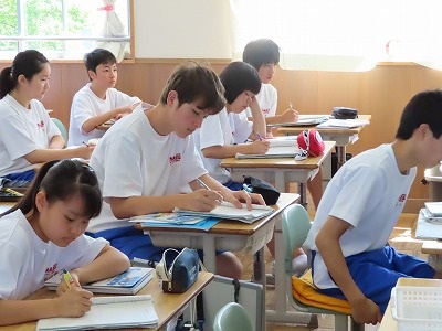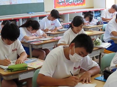 2A英語:英文を聴いて、意味を考えています。ポイントとなる単語をメモして、全体の内容をつかんでいました。