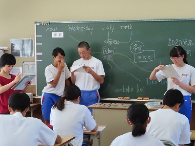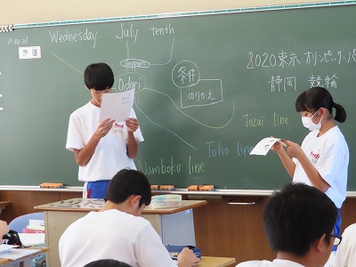 3A英語:英語で道案内をする文をグループで作成した後、発表をしました。話す生徒も聞く生徒もしっかりと行っていました。