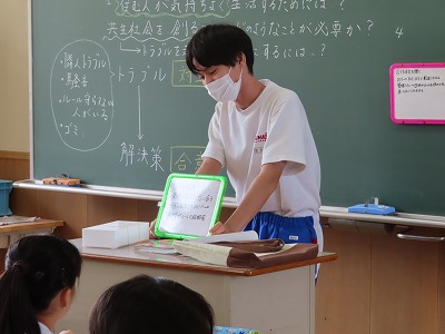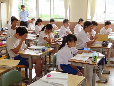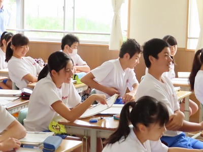3C社会:ある架空の社会集団の中で生じた対立から合意を目指すための方法を考えて発表しています。お互いに考えを聞いて、発表し合い、とても盛り上がっていました。