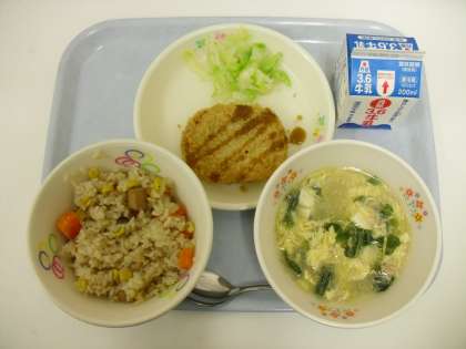 ・ウインナーときのこのピラフ・牛乳・豆とかぼちゃのコロッケ