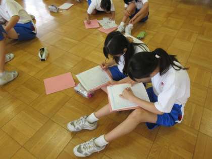2C体育:全国体力運動能力テストの生徒質問紙に取り組んでいました。これらの結果をもとに授業改善を進めていきます。