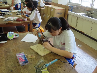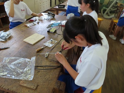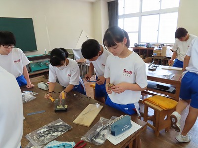 2C技術:ハンダ付けを行っています。今日はソケットのハンダ付けです。プラスチックの部分にハンダごてがあたり、溶けないように注意して行っていました。