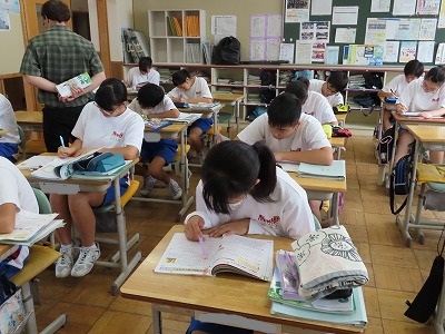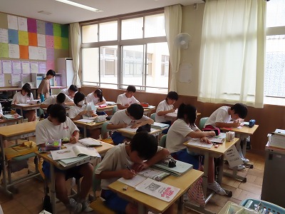 3D英語:問題演習を行っています。この間にも英語の曲が流れています。自然と英語が耳に入ってくる環境ができています。
