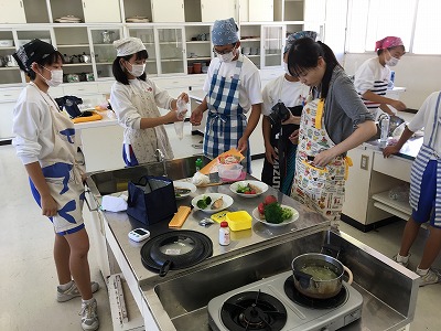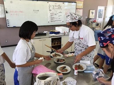 2A家庭:サケのムニエルをつくっています。男女協力しています。最後は美味しくいただきました。
