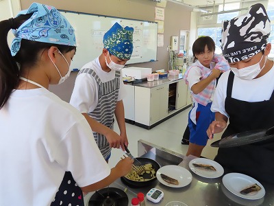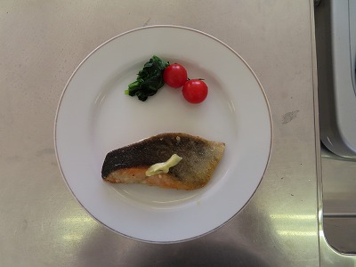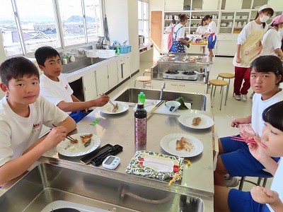 2D家庭科:サケのムニエルづくりです。火加減や味付けなど気を配りながらつくりました。最後は美味しくいただきました。