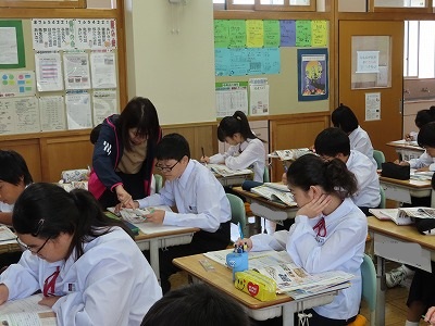 1E社会:奈良時代の人々の暮らしについて、どんな暮らしをしていたのか教科書や資料集から考えています。特に税の仕組みについて学んでいました。