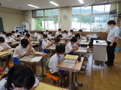 1A英語:町の中の会話を聞いて、どの場面について話しているのか、探しています。