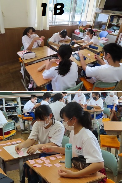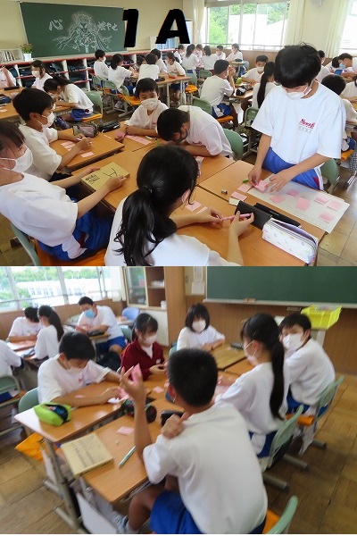 1年生は、「人から言われてうれしかった言葉」「人から言われて悲しかった言葉」について考えています。