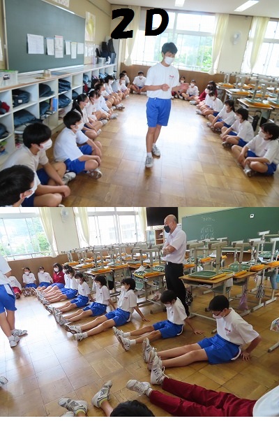 2Dは早く終わったので、「震源地をさがせ」を行っています。誰が始めにその姿になったのか、探しています。クラスが和やかな雰囲気に包まれていました。