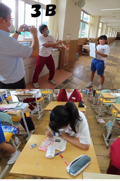 3Bは学級掲示物づくりです。掲示物が仕上がると、係の写真を担任の先生が撮っていました。