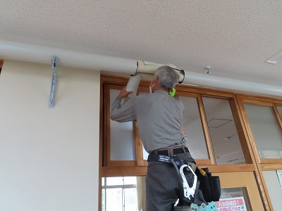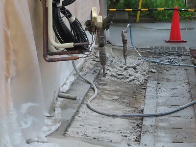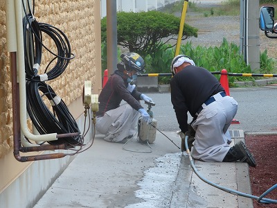 新校舎南側のコンクリートを掘削しています。かなり大きな音が出ています。業者の方が気を遣ってくださり、土曜日の工事として行っています。